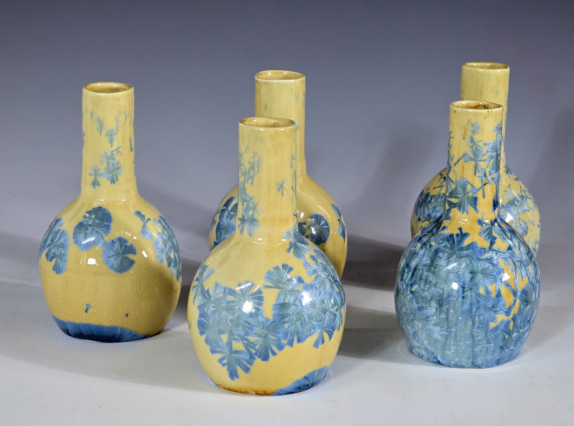 These porcelain bud vases are ideal for cuttings from your garden. They are fired with a unique crystal glaze, which are notoriously difficult to perfect. They form in the same way as ice crystals, but instead of forming at freezing temperatures, they form at 2,000 degrees Fahrenheit. The nature of crystal glazes is variation, so each bud vase has a different pattern of crystals. I strongly suggest that you visit me in my studio to choose the mug you like the most. This also avoids the hassle and expense of shipping.